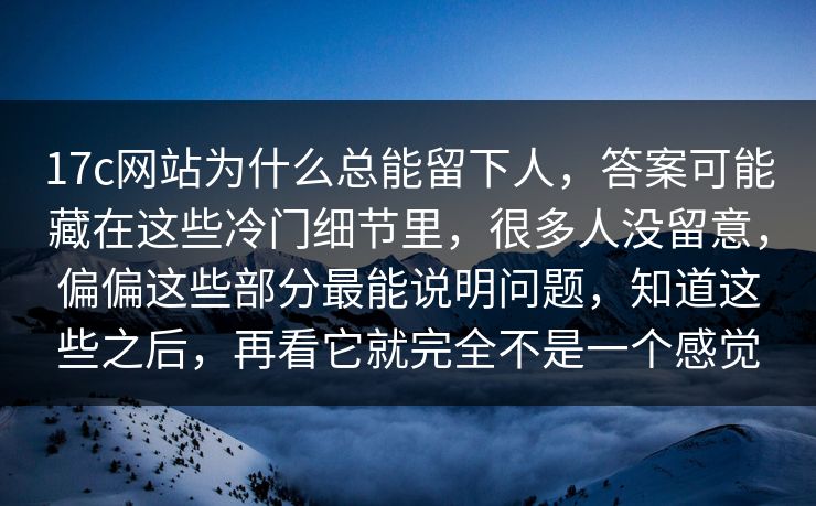 在这个信息爆炸的时代,网站已经不仅仅是我们获取信息和进行交流的工具,更是一种全新的文化体验。17c网站无疑是这一现象的代表之一。自推出以来,这个网站一下子把节奏带起来了,迅速成为了网络的热点。为什么会有这样一个现象呢?为什么人们纷纷说,真正让人停住的是后面那层,怪不得有人半夜还在翻?本文将带您一同探讨这个令人难以抗拒的网站的魅力所在。
